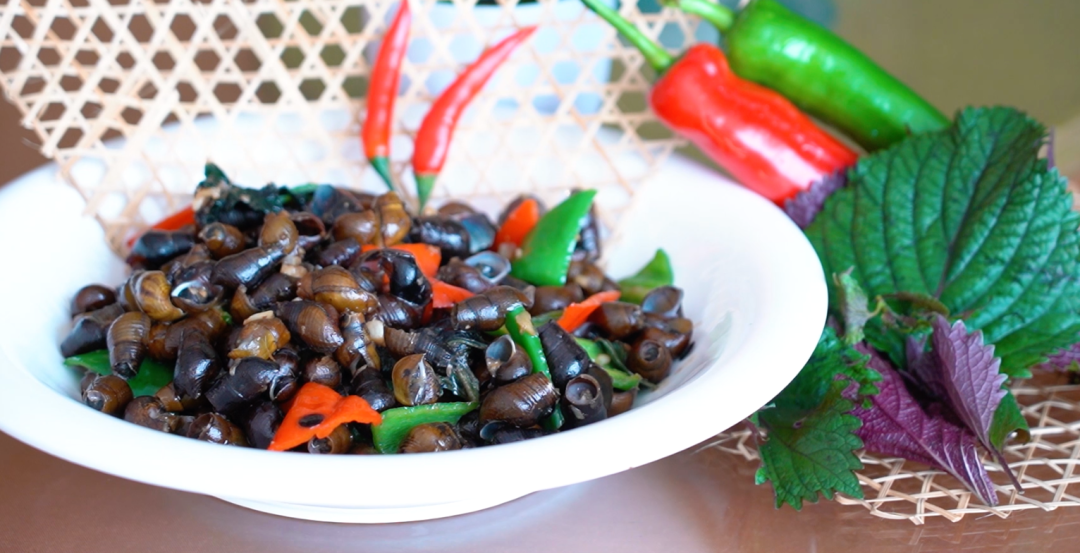将山坑螺搭配紫苏同焖