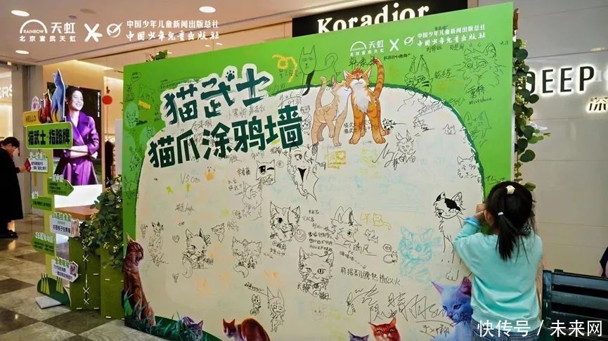 活动现场还设置了“捕猎区”“猫武士考场”等互动游戏区,排起了长队。二楼设有猫爪涂鸦墙,孩子们纷纷展示画艺,引来很多顾客的驻足围观。三楼设有“好感度瓶子与物料交换区”,供“猫迷”们自由交流、收藏。