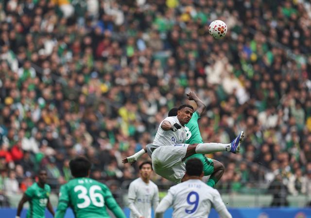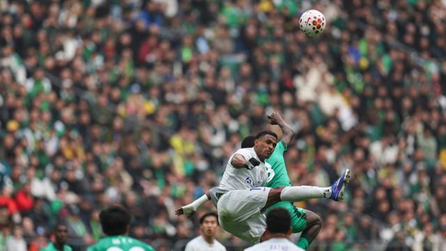 比赛伊始,申花反客为主展现压迫姿态。第8分钟,米内罗突入禁区的推射击中立柱弹出,错失改写比分的绝佳机会。但国安很快凭借主场优势掌控节奏,第22分钟,恩科洛洛边路传中精准找到后点,张玉宁头球破门完成本赛季三轮连续进球,不仅帮助国安1比0领先,更以56球追平前辈大张玉宁的顶级联赛进球纪录。